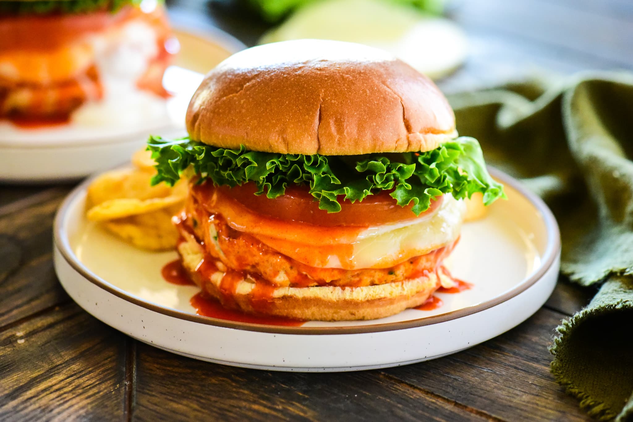 This Buffalo Chicken Burger combines the flavors of buffalo sauce and a well-seasoned, juicy chicken patty for the ultimate chicken burger.